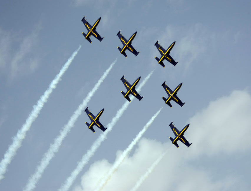 1月27日,在阿聯(lián)酋艾因市國(guó)際機(jī)場(chǎng)舉行了“音樂(lè)伴奏飛行展演”。本次展演共有來(lái)自世界各地的23支飛行表演隊(duì)參加,觀眾可以一邊欣賞優(yōu)美的音樂(lè)一邊觀看精彩的特技飛行。
