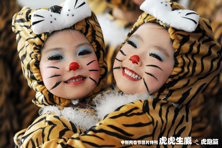 1月26日,在安徽省亳州供電公司舉辦的《和諧快樂》春節(jié)聯(lián)歡會上,來自舞蹈學(xué)校的小朋友表演的舞蹈“虎娃迎春”,受到觀眾的歡迎。中新社發(fā) 張延林 攝