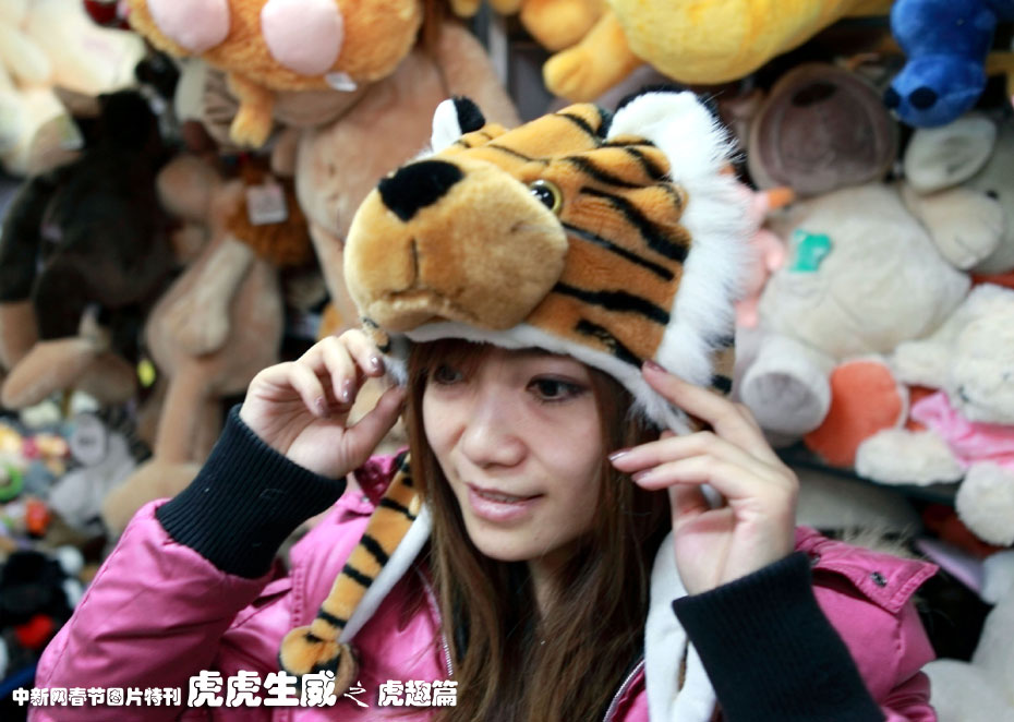 虎年將至,北京商場中造型各異的毛絨老虎玩具及飾品熱賣。中新社發(fā) 老羅 攝