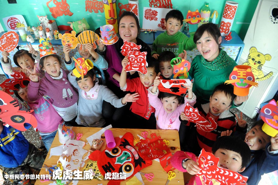 1月13日,北京西城區(qū)一所幼兒園的小朋友在老師帶領(lǐng)下制作各種各樣的老虎。他們用舊報(bào)紙、碎布條等廢舊材料制作成各種構(gòu)思奇妙、栩栩如生的手工制品,迎接即將到來(lái)的農(nóng)歷虎年。中新社發(fā) 遠(yuǎn)舟 攝