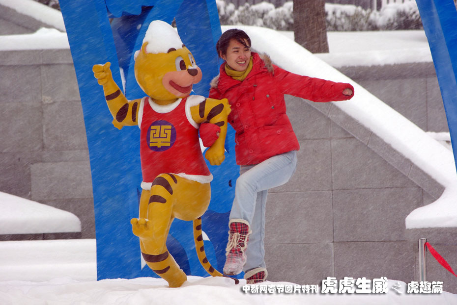 1月3日,北京降下新年第二場雪,在西單文化廣場,人們紛紛拿出相機拍照,留下白雪世界的倩影和新年的祝福。中新社發 九州 攝