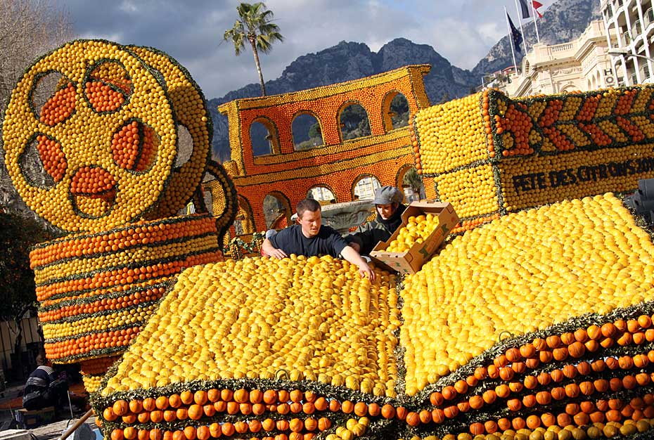 2010年2月10日,法國(guó)芒頓一年一度的檸檬節(jié)拉開(kāi)帷幕。本次檸檬節(jié)將于3月3日結(jié)束。圖片來(lái)源:中國(guó)新聞網(wǎng)