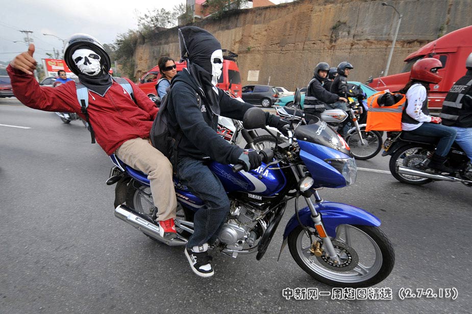當(dāng)?shù)貢r(shí)間2月6日,在危地馬拉首都危地馬拉城,大約30000名摩托車(chē)手駕駛著機(jī)車(chē)在街頭游行。圖片來(lái)源:中國(guó)新聞網(wǎng)>>點(diǎn)擊觀看詳細(xì)內(nèi)容
