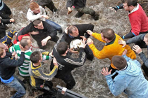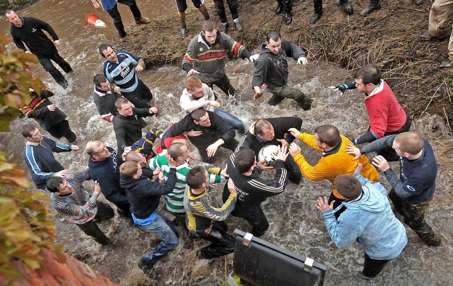 2月16日,英國阿什本的小鎮舉辦懺悔節,每年舉辦懺悔節足球賽是一項古老的傳統,有數百年的歷史,最早的文字記錄是1683年。圖片來源:中國新聞網