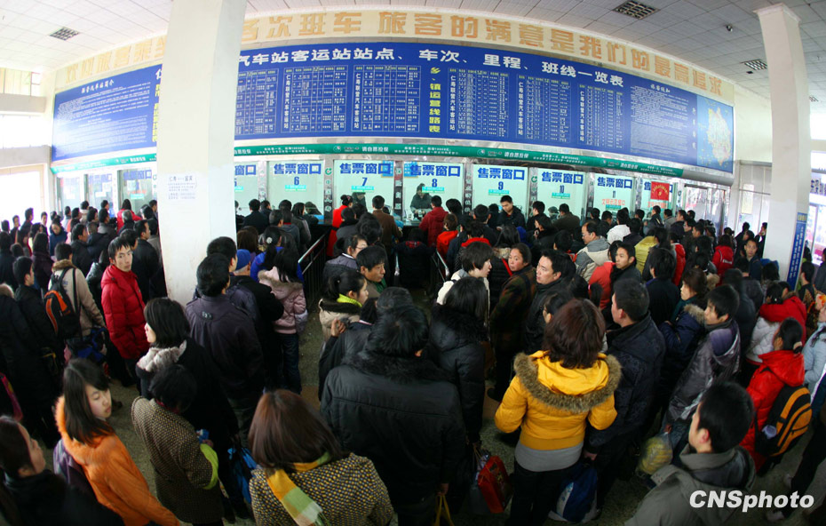 2月19日,四川省仁壽客運中心站售票窗口擠滿了購票旅客。 春節黃金周落幕,節日的氣氛漸漸淡去,各地春運相繼迎來返程客流高峰。中新社發 劉忠俊 攝