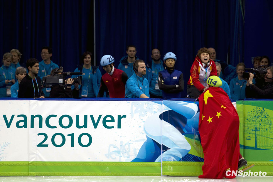2月21日中午,剛剛結束的冬奧會短道速滑女子1500米決賽中,中國選手周洋力壓各路名將,以破奧運會紀錄的2分16秒993的成績奪冠,為中國代表團添得第三金。中新社發 盛佳鵬 攝