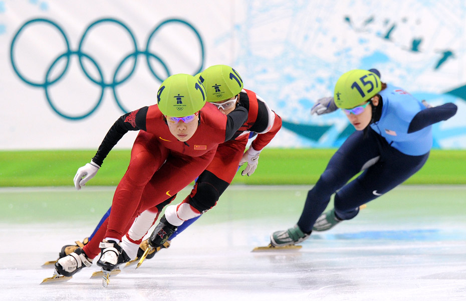 當地時間2月24日,溫哥華冬奧會女子短道速滑3000米接力A組決賽中,中國隊王濛、周洋、孫琳琳、張會四朵金花聯袂出擊,最終將金牌歸入中國隊囊中。圖片來源:中國新聞網