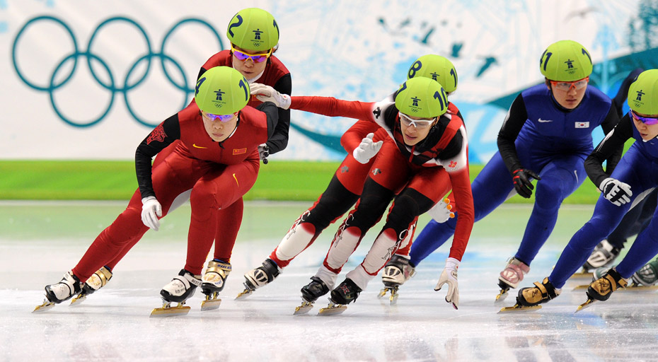 當地時間2月24日,溫哥華冬奧會女子短道速滑3000米接力A組決賽中,中國隊王濛、周洋、孫琳琳、張會四朵金花聯袂出擊,最終將金牌歸入中國隊囊中。圖片來源:中國新聞網
