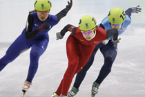 北京時間27日中午,中國選手王濛在2010年溫哥華冬奧會短道速滑女子1000米的決賽中摘得金牌,至此,中國短道速滑女隊包攬了本屆冬奧會女子全部四個項目的金牌創造了歷史。中新社發 盛佳鵬攝