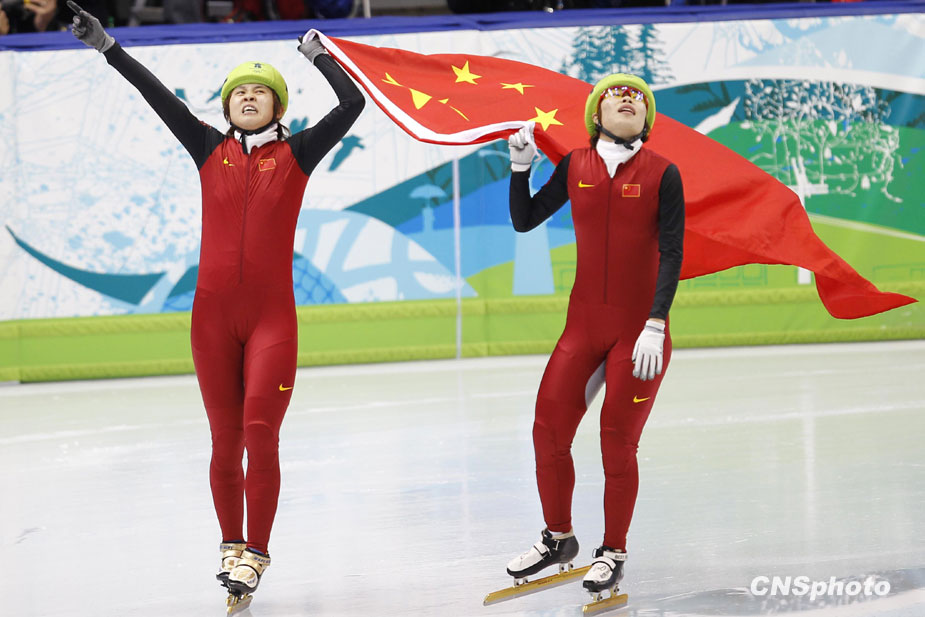 北京時間27日中午,中國選手王濛在2010年溫哥華冬奧會短道速滑女子1000米的決賽中摘得金牌。圖片來源:中國新聞網