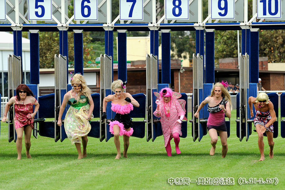 當地時間2月26日,澳大利亞悉尼,眾多同性戀們濃妝艷抹在皇家賽馬場舉行賽跑,迎接即將到來的悉尼同性戀大游行。圖片來源:中國新聞網>>點擊觀看詳細內容