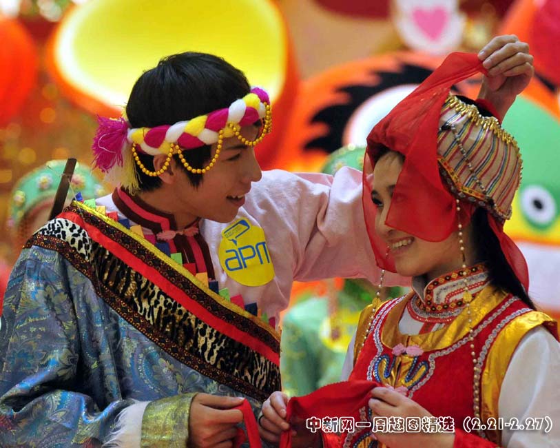 為迎接元宵節(jié),香港創(chuàng)紀(jì)之城將舉行三大特色少數(shù)民族婚禮,包括最多人口的壯族、好客的苗族和能歌善舞的蒙古族。25日,商場預(yù)演蒙古族新郎迎接新娘片段。圖片來源:中國新聞網(wǎng)>>點擊觀看詳細(xì)內(nèi)容