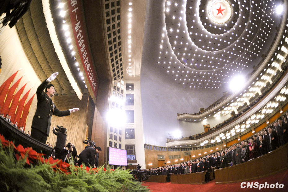 3月3日下午,中國政治生活中的年度盛會——全國政協十一屆三次會議在北京人民大會堂隆重開幕。圖片來源:中國新聞網