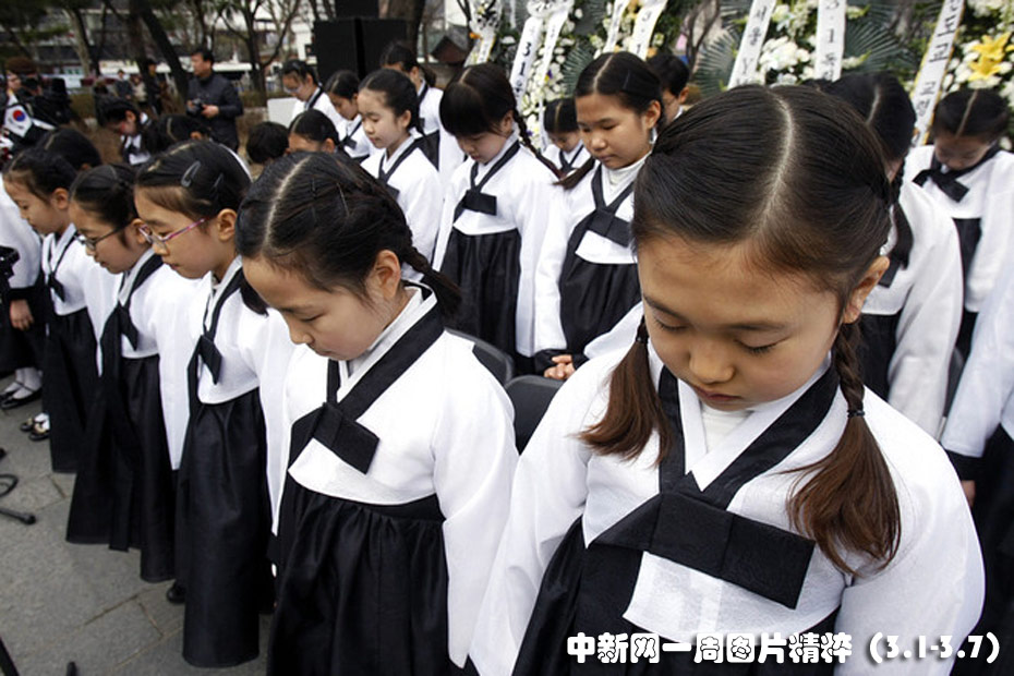 近日,韓國首爾的小學生身穿傳統(tǒng)服飾在三一運動紀念活動上默禱。三一運動紀念日是為了紀念1919年3月1日發(fā)生的反抗日本殖民統(tǒng)治的起義而設(shè)。圖片來源:中國新聞網(wǎng)