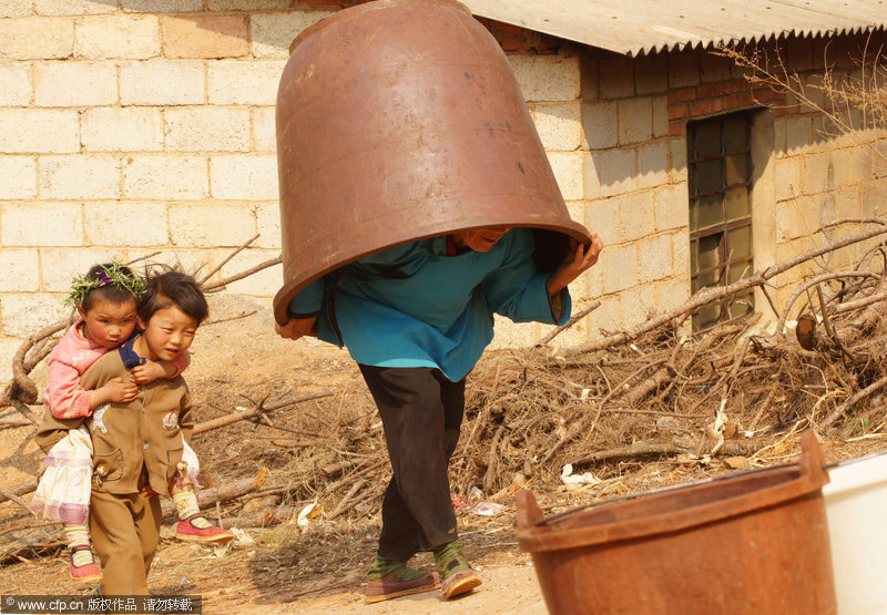 2010年3月26日,云南省尋甸縣河口鄉,一個在云南省最早出現旱情的地方,現在很多村的水只能靠政府以及愛心企業免費送水維持生活,很多農田絕收,并且正在影響春耕。馬健/CFP
