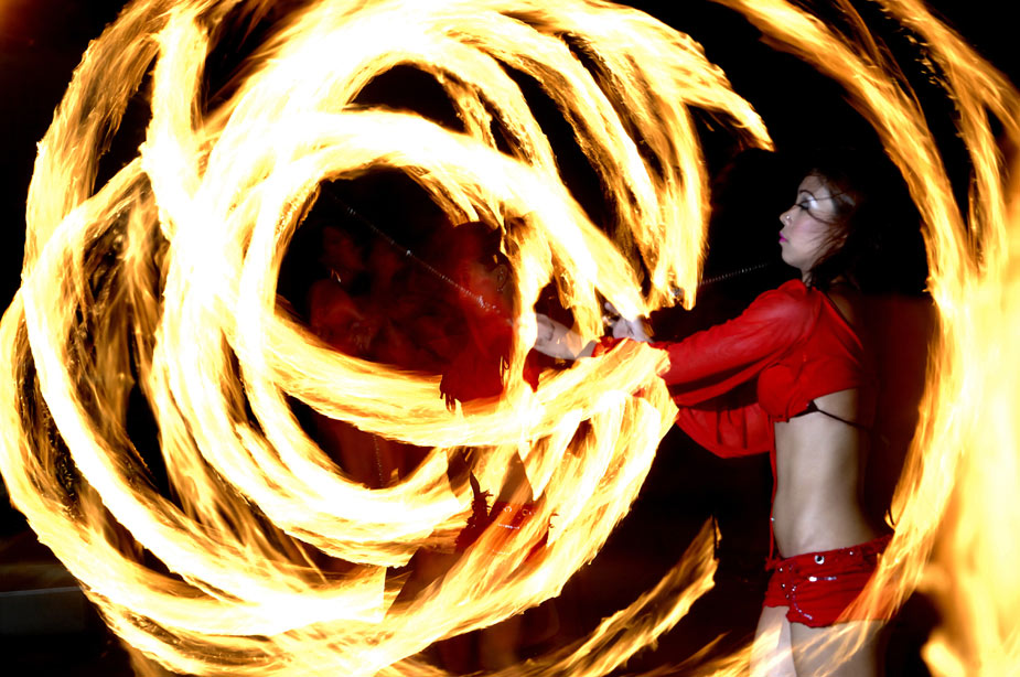 當地時間3月25日,在菲律賓馬尼拉,一名舞者在火焰中“熱舞”。