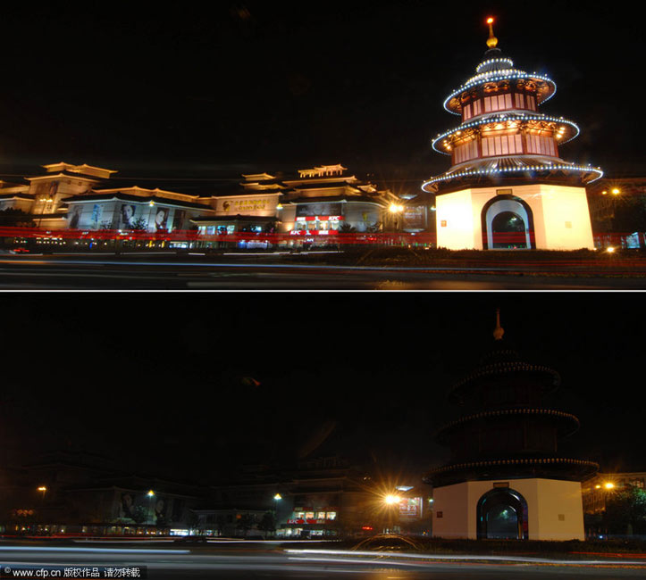 當日,世界自然基金會倡導的“地球一小時”活動得到全世界100多個國家和地區響應。中國的北京、上海、長沙、香港等許多城市也加入到這一活動中。圖片來源:中國新聞網