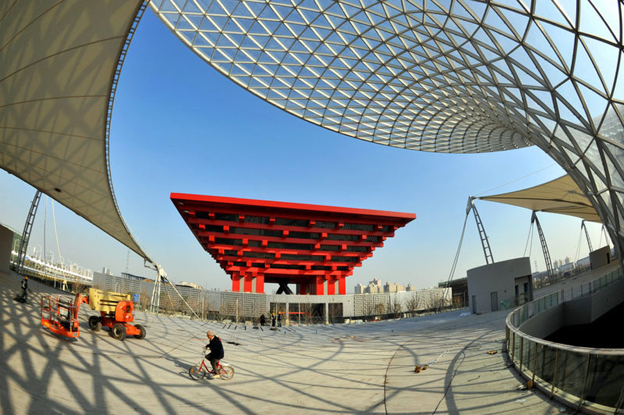 自1851年首次在英國倫敦舉辦以來,世界博覽會已走過了150多年,世博會上各個國家的展館也成為記錄一個國家發展和進步的“書簽”。讓我們通過這一百多年來出現在世界博覽會上的中國館,來回眸世博會的百年變遷,感受世博會與中國結下的不解之緣。圖為建設中的上海世博會世博園區-中國館、陽光谷、世博軸。至誠/CFP