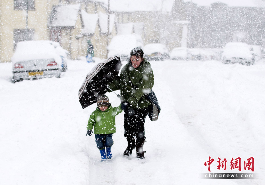 當?shù)貢r間3月31日,英國北部部分地區(qū)遭暴風(fēng)雪襲擊,導(dǎo)致數(shù)萬戶家庭斷電,有12名學(xué)生在惡劣天氣引發(fā)的交通事故中受傷。圖片來源:中國新聞網(wǎng)