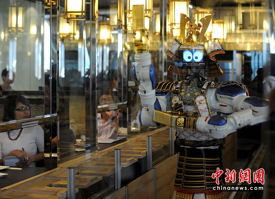 這家日本餐館是泰國首家擁有機器人服務員的餐館,顧客可以通過電子觸摸屏進行點菜,機器人則會帶來相應的服務。機器人服務員能有節奏地跳舞,還可以自動到餐桌為客人收走空盤子。