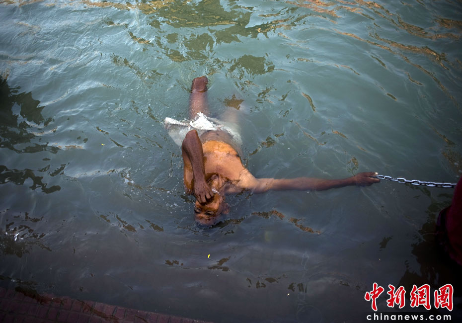 4月13日,印度教傳統節日“大壺節”步入尾聲,前來參加盛典的上萬苦行僧赤裸身體涌入恒河,祈求洗清身上的“罪惡”。圖片來源:中國新聞網