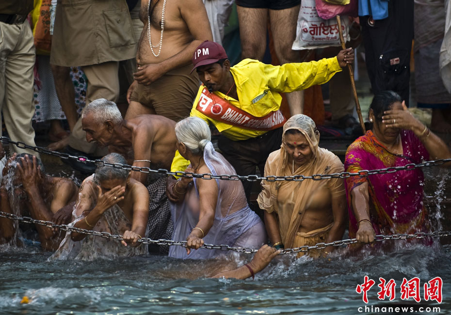 4月13日,印度教傳統節日“大壺節”步入尾聲,前來參加盛典的上萬苦行僧赤裸身體涌入恒河,祈求洗清身上的“罪惡”。圖片來源:中國新聞網