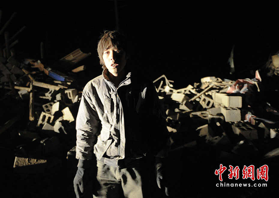 圖為4月15日凌晨1時,青海玉樹地震災區居民摸黑在地震廢墟中尋找親友。中新社發 廖攀 攝