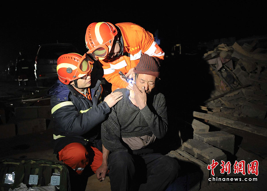 圖為4月15日凌晨1時,中國國際地震救援隊隊員在玉樹地震災區展開救援工作,連夜救治玉樹地震傷員。中新社發 廖攀 攝