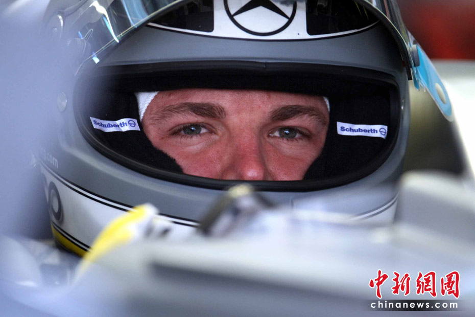4月16日,2010國(guó)際汽聯(lián)F1世界錦標(biāo)賽上海站在上海國(guó)際賽車(chē)場(chǎng)開(kāi)始車(chē)手第一、第二次練習(xí)賽。圖為代表梅賽德斯GP車(chē)隊(duì)出戰(zhàn)的德國(guó)車(chē)手羅斯伯格。 中新社記者 任晨鳴 攝