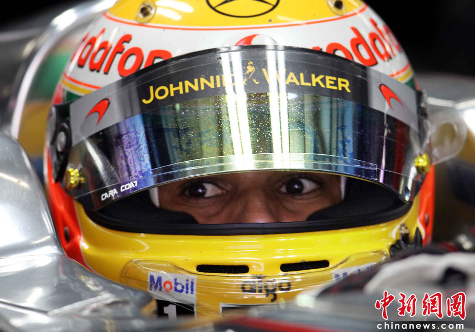 4月16日,2010國(guó)際汽聯(lián)F1世界錦標(biāo)賽上海站在上海國(guó)際賽車(chē)場(chǎng)開(kāi)始車(chē)手第一、第二次練習(xí)賽。圖為代表邁凱輪車(chē)隊(duì)出戰(zhàn)的英國(guó)車(chē)手漢密爾頓跑出當(dāng)日最好成績(jī)。中新社記者 任晨鳴 攝