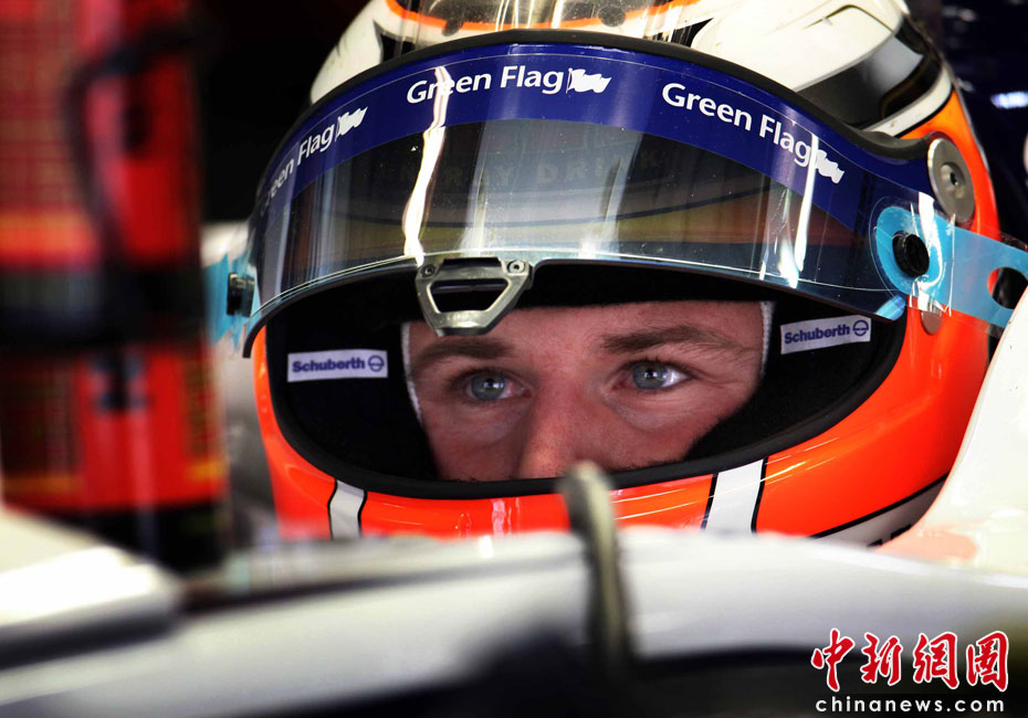 4月16日,2010國際汽聯(lián)F1世界錦標(biāo)賽上海站在上海國際賽車場開始車手第一、第二次練習(xí)賽。圖為代表威廉姆斯車隊(duì)出戰(zhàn)的德國車手霍肯伯格。中新社記者 任晨鳴 攝