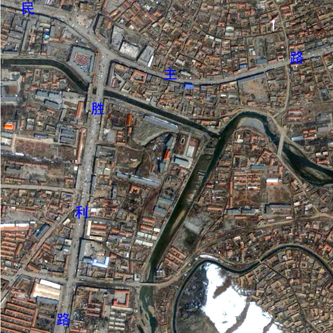 利用對(duì)地觀測(cè)中心2010年4月16日獲取的高分辨率航空遙感數(shù)據(jù),提取出玉樹州結(jié)古鎮(zhèn)城區(qū)范圍內(nèi)地震破壞最嚴(yán)重或典型地區(qū),使之與GoogleEarth中相應(yīng)位置的震前遙感衛(wèi)星數(shù)據(jù)進(jìn)行對(duì)比,直觀展現(xiàn)結(jié)古鎮(zhèn)在此次地震中的受影響程度。圖片來源:中國科學(xué)院