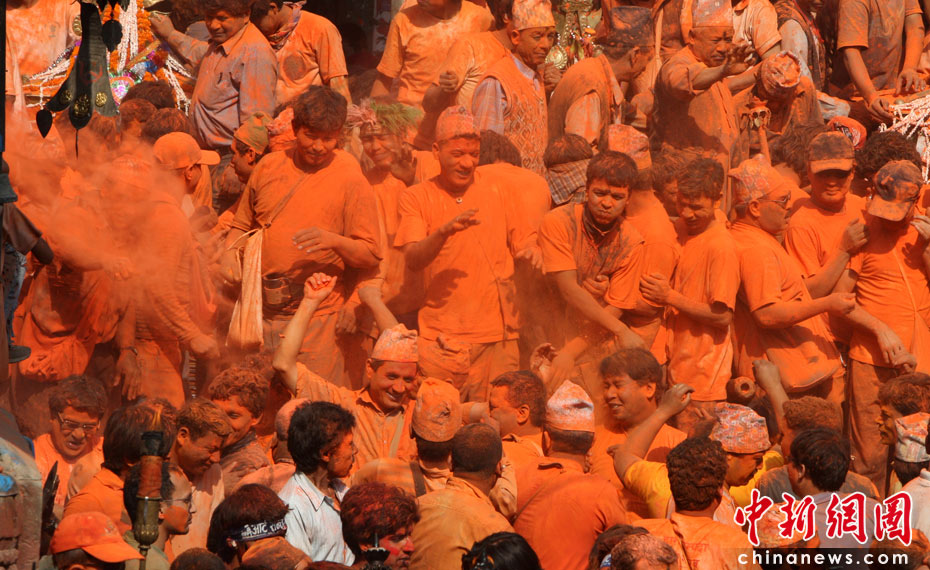 4月15日,尼泊爾迎來一年一度的傳統節日“尼歷新年”。當日全國放假一天,在加德滿都郊區人們涌上街頭潑灑紅粉慶祝新年。圖片來源:中國新聞網