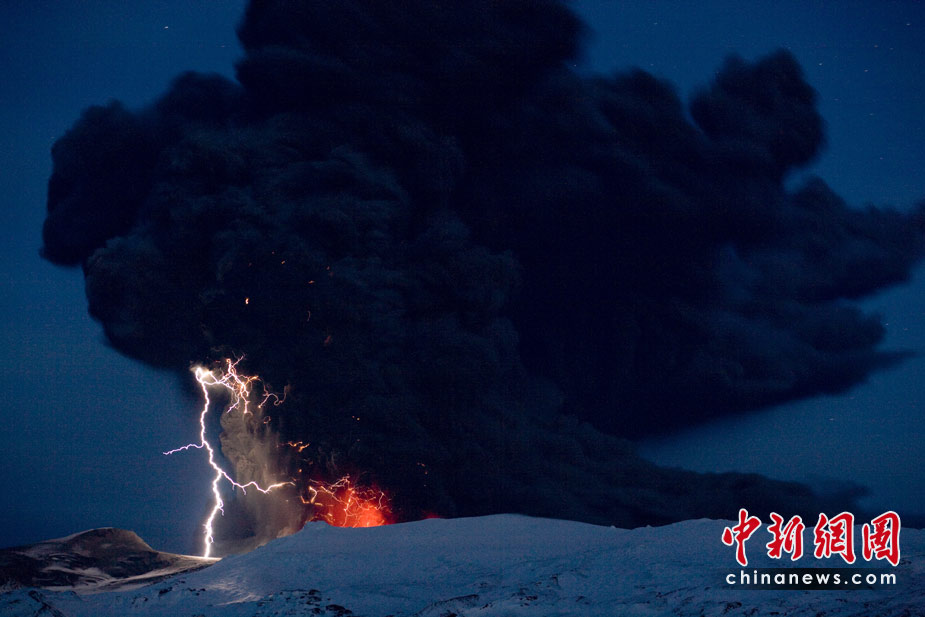 4月19日,冰島埃亞菲亞德拉火山持續噴發,火山正在由噴出火山灰向噴發熔巖轉變。