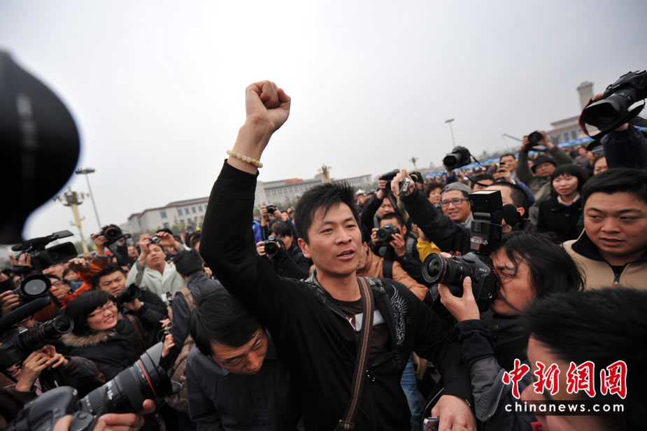 4月21日,為表達全國各族人民對青海玉樹地震遇難同胞的深切哀悼,中國國務院決定,舉行全國哀悼活動,全國和駐外使領館下半旗志哀,停止公共娛樂活動。圖為北京天安門廣場上哀悼遇難者的民眾。中新網記者 金碩 攝