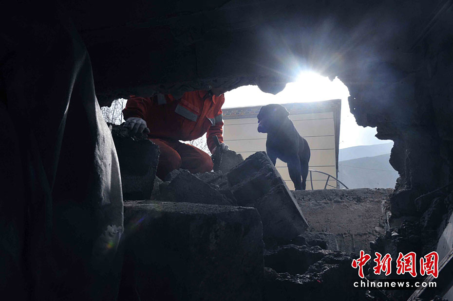 名貴的黑貝犬是中國國家救援隊(duì)趕赴青海玉樹地震災(zāi)區(qū)6只搜救犬隊(duì)成員之一,身價近百萬元人民幣。4月21日清晨八時許,它在救援隊(duì)員的帶領(lǐng)下,到玉樹地震災(zāi)區(qū)中心商業(yè)街廢墟里,四處奔波,盡職盡力尋找生命跡象。10時后,他和救援隊(duì)員都出現(xiàn)高原反應(yīng),暫時休整,準(zhǔn)備再戰(zhàn)。賈國榮 攝
