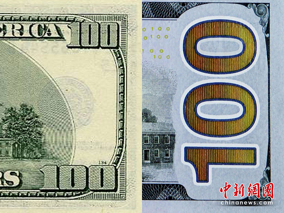 4月21日,美國財(cái)政部和美聯(lián)儲共同發(fā)布新版100美元面值的紙幣票樣。此次發(fā)行新版百元美鈔旨在防范假鈔,同時,老版美元仍將繼續(xù)流通。圖片來源:中國新聞網(wǎng)