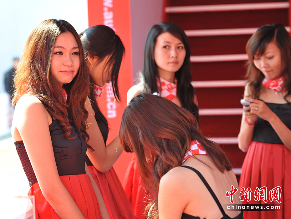 “第十一屆北京國際車展”場內車模爭奇斗艷,另類模特也值得人們關注。中新網記者 金碩 攝