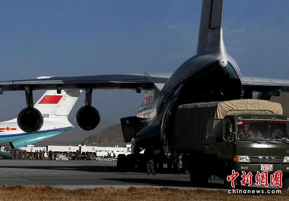 4月18日清晨6時 (賈國榮)天蒙蒙亮,中新社和中新網從北京增援采訪青海玉樹7.1級強烈地震的記者組,趕赴到成都某空軍機場,搭乘中國空軍伊爾-76重型運輸機037機群呼嘯起飛。