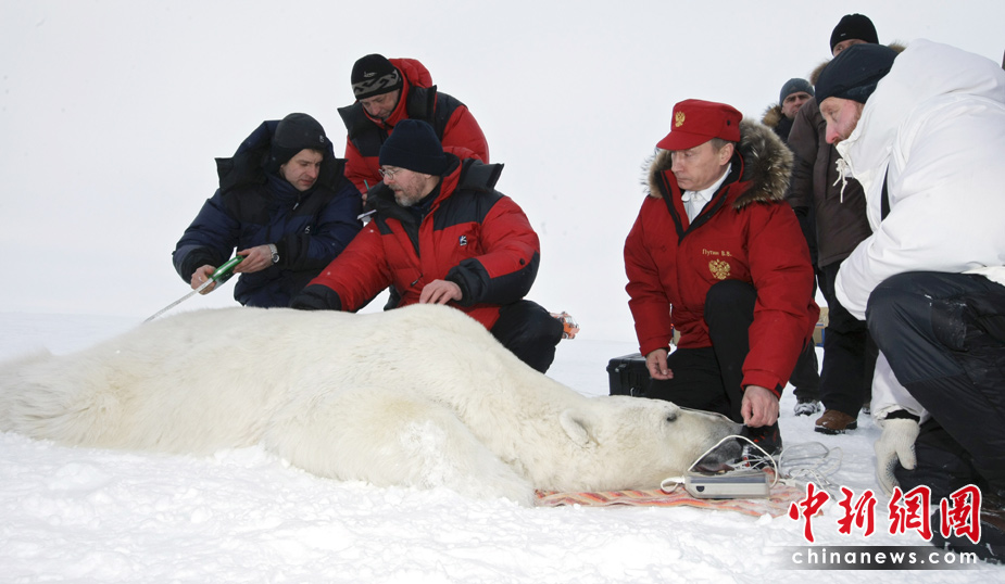 4月29日,俄羅斯總理普京參觀亞歷山大地島(法蘭士約瑟夫地群島)。 普京還與在研究學者一同給通過專門的陷阱捕獲的北極熊戴上衛星定位項圈。此外,學者們還與普京一起給北極熊進行測量和秤體重,