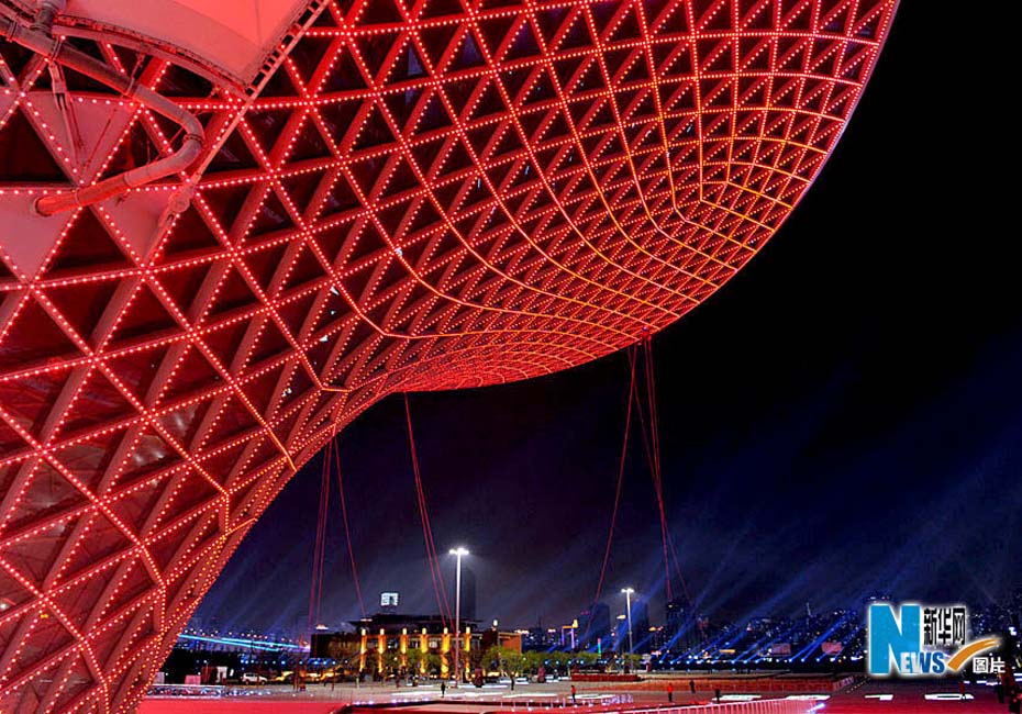 靜待開幕的世博園沉浸在一片暮色中,流光溢彩,給人無限遐想。從外灘到世博園,“夜”上海不斷延伸,讓人激情跳躍。圖片來源:新華網(wǎng)孫巍攝
