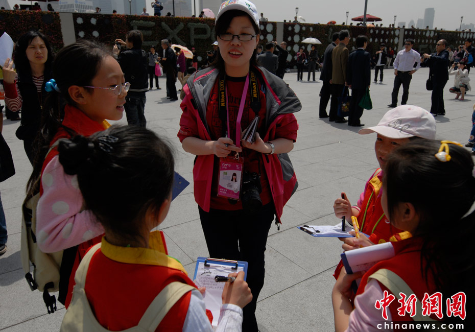 30日上午,記者在上海外灘采訪時遇到小主人報新聞學校的“小記者”們在采訪,成為他們今天的第一個采訪對象。“小記者”們最關心的問題是關于世博會,“如何讓世界變得更美好”。她們都表示非常想去看世博會,最想看的是中國館,但是要留到最后看,“因為其它館都會拆掉,中國館會保留下來”!靶∮浾摺眰冋f,自己要從身邊小事做起,做有文明有素質的人,并表示希望自己將來成為真正的“大記者”,更好地報道上海。吳歆/文 王紅綱/圖