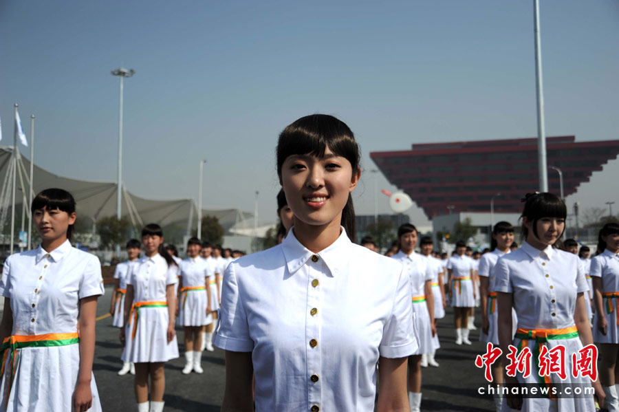 4月30日晚,舉世矚目的上海世博會開幕式將在黃浦江畔世博園區(qū)舉行。圖為上海世博會禮儀小姐正在做最后準(zhǔn)備。中新社發(fā) 許康平 攝