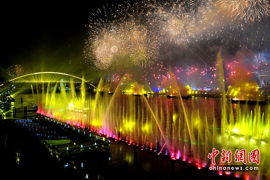 4月30日晚21時28分,在世博會焰火燈光表演開始。萬千煙花爭奇斗妍,黃浦江兩岸綿延3.28公里同時奏響火樹銀花不夜天的華彩世博樂章。圖片來源:中國新聞網(wǎng)