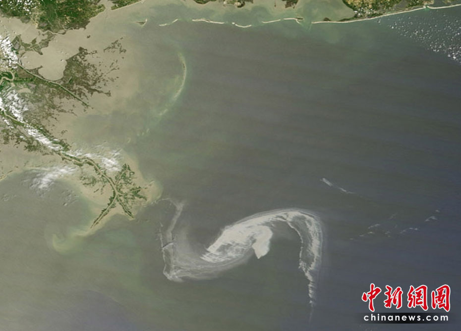 4月30日,在美國路易斯安那州海岸,為阻隔原油擴散而設的護欄帶被海風浪沖到岸邊。當天,美國總統奧巴馬下令調查墨西哥灣石油鉆井平臺爆炸事件,以避免將來類似事件再次發生。平臺爆炸沉沒后泄漏的原油當天已漂至美國沿岸。圖片來源:中國新聞網
