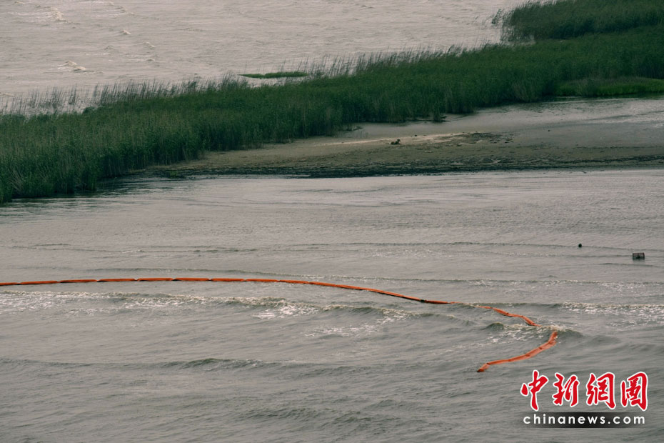 4月30日,在美國路易斯安那州海岸,為阻隔原油擴散而設的護欄帶被海風浪沖到岸邊。當天,美國總統奧巴馬下令調查墨西哥灣石油鉆井平臺爆炸事件,以避免將來類似事件再次發生。平臺爆炸沉沒后泄漏的原油當天已漂至美國沿岸。圖片來源:中國新聞網