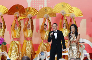 2010年上海世界博覽會開園儀式于5月1日上午舉行,全國政協主席賈慶林與國際展覽局主席藍峰共同啟動按紐。中新社發 賈國榮 攝