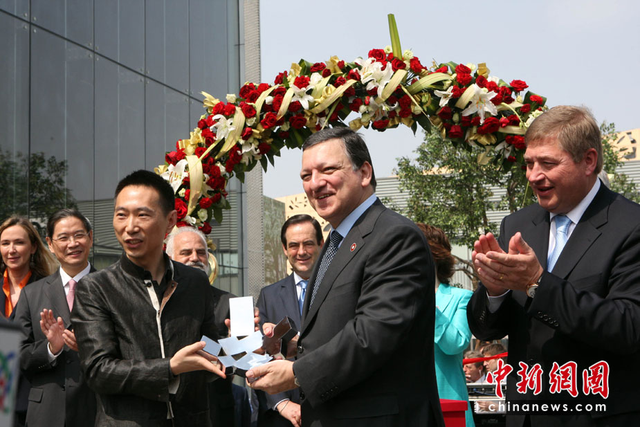 5月1日,歐洲委員會主席巴羅佐(中)在上海世博園區出席歐盟館開館儀式。當日,上海世博會正式開園。中新社發 湯彥俊 攝