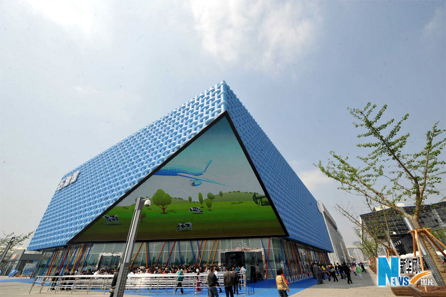 5月1日,上海世博會正式開園迎客,首批游客入園參觀。圖為石油館前的游客。朱崢攝
