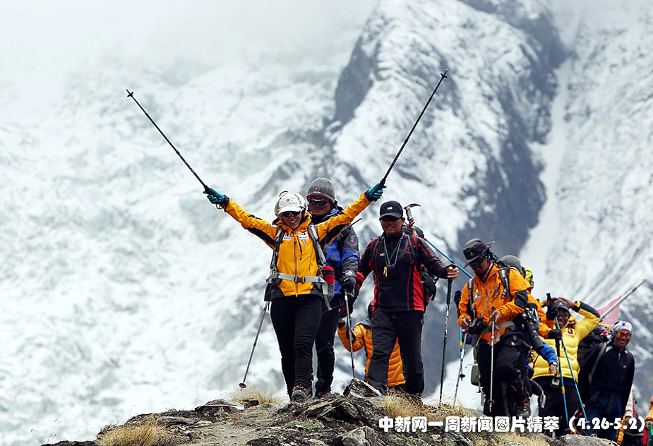 29日(周四),韓國登山運(yùn)動員吳銀善在到達(dá)尼泊爾安納布爾納峰的營地后揮手歡呼。她自認(rèn)是世界上首位登上世界14座最高山峰的女性。